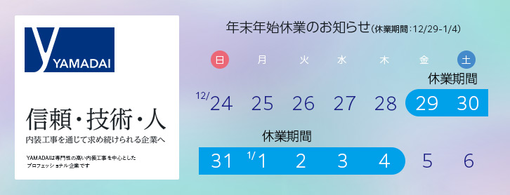 年末年始休業のお知らせ(休業期間:12/29-1/4)